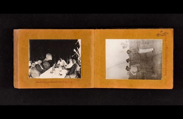 This visual investigation begins with an image from the photographic album of a border delimitation mission on the Angolan/Congolese frontier. The image shows a lunch at the Portuguese camp on October 5, 1914. At the table are six white men, three commanding officers from each colonial power, Portugal and Belgium. Standing at the back of the improvised dining room, is a black servant. His head, merged into the background, is invisible. Using the original glass negative, Vasconcelos retrieved the man’s features. The image was printed, cut up and reworked through collage, drawing and photography, resulting in a short animation and a web-based experiment, Daemonicycles, that shows part of the research material. The work reflects upon the enduring fantoms of history and colonialism, reconsidering power dynamics, cosmology and culture.