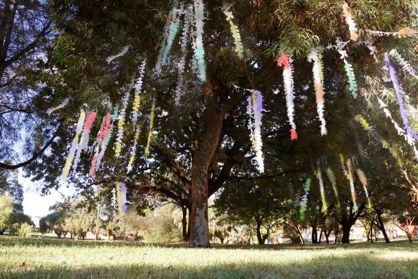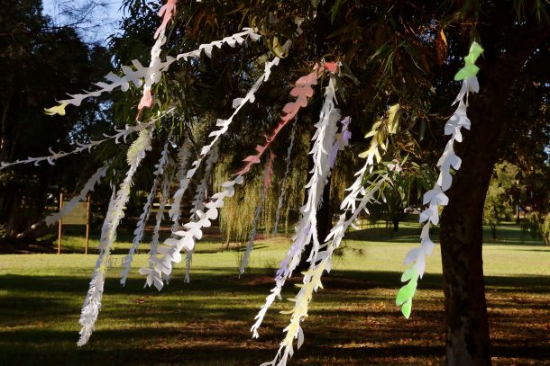 In the physical world, ribbons crafted to mimic the leaf shapes and flower colours of Western Australia’s endangered plants (each of them hand made by the artist), flutter in the wind, intertwined among tree branches. These ribbons are made from translucent, eco-friendly materials that reflect tree shadows. The ribbons are white with colourful, glow-in-the-dark paint marking their blooming period using 12 discrete equal partitioning. Collaborating with computer scientists, Xiaoyu Yang transforms plant DNA into audible sounds and mixes them with soundscapes of habitats of endangered plants. In the virtual world, visitors are invited to use AR scanning, through Artivive a downloadable app from either the App Store or Google Play. By combining extinct plants that only exist in the virtual world with those that are endangered but still present in the real world, the work highlights the plight of endangered plants and makes the overlooked consequences of climate change more visible.