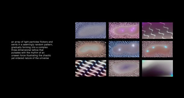 Marta Isabel Araújo Amorim highlights the complexity of curating generative algorithms, which operate through statistical inference, rather than by artistic or conceptual reasoning. The curatorial approach applied in this work was guided by the idea of constructing a synthetic visual landscape, selecting images that exist between microscopic organic structures and artificial formations. The process begins with initial textual prompts that reference abstract and subjective qualities, created through interactions with language. These prompts initiate iterative cycles of image production, during which the artist-researcher actively negotiates with the randomness of the system. Nonetheless, the resulting compositions remain devoid of inherent meaning until they undergo curatorial decision-making, an evaluative stage on what to retain or discard. These ambiguous compositions subtly evoke dynamics within nature’s generative processes while cultivating speculation and ambiguity, ultimately creating ways of seeing digital environments as fluid, interwoven ecosystems.